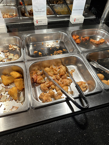 Read moreWir sind bisher gerne hergekommen, jedoch war es am Samstag Katastrophe... wir hatten für 5 Personen reserviert und sind erstmal ne ¼ Stunde in der Eingangsschleuse angestanden. Dann wurden wir nur gefragt, ob wir reserviert haben, was wir mit "ja" beantworteten. Wir wurden jedoch weder nach dem Namen gefragt noch wurde ins Reservierungsbuch geguckt. Wenn wir also nicht reserviert hätten und das einfach so behauptet hätten, wäre es das Gleiche gewesen. Schließlich wurden wir aufgefordert, der Bedienung zu folgen. Diese verwies uns auf den schmalen Gang zwischen Theke und Buffetflächen, wo wir zu fünft bei regem Durchgangsverkehr von Servicepersonal und hungrigen Gästen abermals warten sollten (mit der Begründung, dass aktuell nur 4er-Tische frei sind). Fünf Minuten später wurden wir dann zu unserem Platz geführt - ebenfalls ein 4er-Tisch, bei dem die Bedienung von einem anderen Tisch noch einen Stuhl zu unserem Tisch gezogen hat, womit eine Person mitten am Gang saß und sowohl Gästen als auch Personal - insbesondere mit Geschirrwagen - im Weg war. Zu dem Zeitpunkt fühlten wir uns schon alles andere als behaglich... Es dauerte wiederum ne ½ Stunde, bis wir überhaupt Getränke bestellen durften - und das auch nur, weil wir einem vorbeihuschenden Kellner aufgehalten haben. Einige andere Tische, die nach uns gekommen sind, hatten in der Zwischenzeit alle ihre Getränke plus Servietten. Zweites wurde bei uns dann gleich komplett weggelassen. Paar Minuten später hatten wir zumindest endlich unsere Getränke, weshalb wir uns dann auch Essen vom Buffet holten. Das Essen an sich war okay (ich war in der Vergangenheit schon oft hier, jedoch hatte ich es bei den anderen Besuchen als besser empfunden). Unseren ersten Teller hatten wir leer, haben 10 Minuten gewartet und sind nochmal zum Buffet vor. Bei Rückkehr auf unseren Platz waren die benutzten leeren Teller vom 1. Mal noch immer am Tisch - ist ja nicht so, als wäre es an einem eigentlichen 4er-Tisch bei 5 Personen eh schon beengt. Wir aßen auch unsere zweiten Teller leer, die wir dann auf unsere ersten Teller draufstapelten. Insgesamt 25 Minuten sind nunmehr vergangen, seitdem wir unsere ersten Teller abgestellt hatten und diese durch das Personal mitgenommen wurden. Nicht falsch verstehen, wir sind keinesfalls pingelich und es war auch volle Hütte. Wir hatten jedoch einfach das Gefühl, dass das gesamte Personal zielstrebig auf alle Tische zugesteuert ist - mit Ausnahme von unserem. Habe mich zum Nachtisch auf leckeren Kuchen gefreut, die Hälfte von den Sorten auf meinem Teller war jedoch leider noch gefroren. Als schlussendlich nur noch ⅓ der Gäste im Lokal waren, wollten wir auch zahlen. Die Bedienung, die wir wild fuchtelnd herbeten missten, weil uns ja scheinbar keines Blickes gewürdigt wurde, huschte nur kurz mit dem Wort "zahlen?" an unserem Tisch vorbei, woraufhin wir deutlich nickten. Daraufhin sind wieder 20 Minuten vergangen, bis wir endlich abkassiert wurden. Das Pech zum Ende beim Verlassen des Lokals - Glückskekse waren auch keine mehr da.