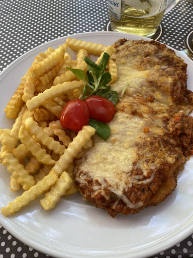 Sehr nettes Personal, eine gute überdachte Terrasse zum sitzen, leckeres und preislich sehr gutes Essen. Die Portionen sind groß und das Schnitzel Milano war gut gewürzt.