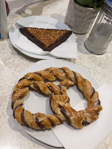 Personal war ganz freundlich, hat einen etwas trägen Eindruck gemacht (sozusagen sich nicht so für den Kunden interessiert oder zum Beispiel etwas vorgeschlagen als die Person gesagt hat "ich überlege mir noch etwas süßes zu nehmen..." Das Personal, dass über die Ware und Qualität überzeugt ist könnte diese Gelegenheit nutzen und sagen "das ist eine super Idee, ich empfehle ihnen dies und das Darum...." Und auch irgendwie etwas schlecht gelaunt rüber gekommen als wir bezahlen wollten so von wegen, ja ,ja geht endlich ... Aber ist nur ein Eindruck. Waren trotzdem freundlich ) . Ambiente war ok , alles etwas chaotisch and der thresen und Theke, aber sauber. Gute Auswahl , Qualität scheint auch in Ordnung. Viele susse und auch salzige Optionen, auch warmes Essen . Kaffee etwas überteuert für nichts herausragendes. Alle anderen Preise ok....