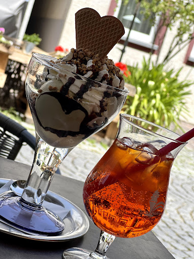 Absolut nicht zu empfehlen. Nichts von dem was wir eigentlich bestellen wollten (und das alles auf der Karte stand) gab es: Weder Kuchen, noch Apfelstrudel, noch Tiramisu. Naja, dann halt doch einen Eisbecher (...dachten wir). Meine Freundin bekam ihr bestelltes Wasser in einer billigen Supermarkt-Plastikflasche und wurde nach ihrer Latte Macchiato-Bestellung erstmal zurecht gewiesen, dass man das nur vormittags trinkt. Nachdem die Bedienung dann ewig nicht mehr zu uns kam, haben wir schließlich jeder nur noch eine Kugel Eis bestellt; die kostet immerhin auch schon 2€ und war ok, aber nichts Besonderes. Die Bedienung (evtl sogar Mit-Inhaberin?) hat sich mehr bei allen über alles Mögliche beschwert als dass sie wirklich bedient hätte – und wenn, dann total unfreundlich. Als sie wieder ewig nicht kam als wir bezahlen wollten, sind wir irgendwann rein, um drinnen zu bezahlen – wurden aber von dem Herrn dort wieder rausgeschickt, um draußen am Tisch zu bezahlen. Da die Dame überhaupt keine Anstalten machte, zu uns zu kommen (sondern uns sogar zwei Mal eine barsche "Stop-/Wartet-Geste" zeigte, als wir ihr signalisierten, dass wir gerne zahlen wollen), legten wir irgendwann das Geld einfach auf den Tisch (ausnahmsweise mal ohne Trinkgeld zu geben) und gingen. Unsere Tischnachbarn sind sogar ohne Bestellung wieder aufgestanden und gegangen, da sie nach bestimmt 20 Minuten immer noch nicht bedient wurden. Sowas haben wir noch nie erlebt... Fast schon kabarettreif oder was für die "versteckte Kamera", um zu schauen, wie die Leute reagieren, wenn sie so unfreundlich...