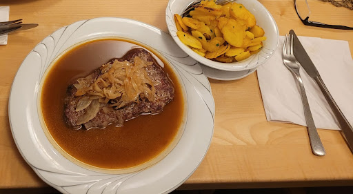 Read moreWir haben das Restaurant mit einer Größe Gruppe besucht (Reservierung war entsprechend gemacht), und insgesamt war das Restaurant gut besucht. Leider wirkte sich das auf den Service aus, denn nach der ersten Bestellung wurde und keine weitere Getränke Bestellung oder Bestellung angeboten, die Kellnerinnen gingen einfach an unserem Tisch vorbei. Die vegetarische Auswahl beschränkt sich auf 3 Gerichte. Leider waren die Kässpätzle eine absolute Enttäuschung, denn es handelte sich um Spätzle die mit einer Scheibe Käse überschmolzen waren. In den restlichen Spätzle war kein Käse zu finden, ebenfalls wären Schmelzzwiebeln oder ähnliches schön gewesen. Insgeheim wirkte es daher sehr lieblos und ist geschmacklich eher nicht...