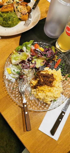 Read moreIch hatte die Spätzle und habe leider nicht auf die vorherigen Kommentatoren gehört... Die sind wirklich richtig schlecht. Ich hab ehrlich gesagt noch nie so furchtbare Käsespätzle gegessen. Das gesamte Gericht war furchtbar, der genutzte Käse schmeckte wie eine Frischkäsemischung mit einem Hauch von Emmentaler (oder was auch immer der kaum merkbare Geschmack nach Käse war..). Das Gericht hatte mehr von Mac and Cheese als von Spätzle. Die glasierten Zwiebeln waren leider auch nur matschig und schleimig und der Salat (am Ende das Einzige was ich gegessen habe) hatte ein mieses Dressing. Schmeckte uns allen nach einem billigen Joghurtdressing, ich hätte mir wenigsten ein paar frische Kräuter gewünscht. Die Preise dafür finde ich echt unverschämt, die größe der Portion wäre ok gewesen wenn es denn tatsächlich geschmeckt hätte. Einfach unterirdisch. Sorry..