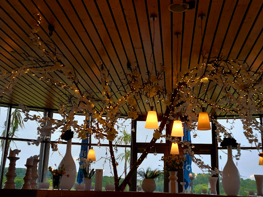 Read moreDas Lokal an sich ist soweit sehr nett eingerichtet. Man hat einen tollen Blick auf den Golfplatz. Der Service ist freundlich, aber wirkte etwas unstrukturiert. Es gab leider erst, nachdem man sich schon anhand der recht üppigen Speisekarte etwas ausgesucht hatte, die Info, dass es weder Flammkuchen noch Ravioli gibt. Somit musste man sich innerhalb kürzester Zeit umentscheiden. Die Speisen wurden dann auch nicht nah beieinander gebracht, sodass man hätte gemeinsam essen können. Manche waren schon fertig, da bekamen andere erst das Essen (ich glaube dass sowohl Küche, als auch Service einfach unterbesetzt waren). Leider steht auch bei den Speisen nicht, welche Produkte verwendet werden (sowas wie Käse, Sahne etc). Es wäre auch hilfreich , wenn man wüsste welche Sachen für Vegetarier geeignet sind oder sogar für Veganer (einfach hinter die Speise ein entsprechendes Symbol). Ich habe beim Bestellen eines Salats mit Champignons gedacht, dass man da eigentlich nix groß falsch machen könnte. Leider war Parmesan über den Champignons, die ich dann nicht essen konnte (obwohl die Kellnerin bei meiner Vorspeise bereits eine Reklamation erhalten hat, da auch dort Parmesan drauf war und ich es daher nicht essen konnte). Auch gibt es keine Auswahlmöglichkeit bezüglich des Salatdressings. Es gibt scheinbar ein Standarddressing mit Sahne. Da ich dies bei meiner Tischnachbarin gesehen hatte, habe ich schnell Essig/Öl geordert, bevor ich wieder etwas reklamieren muss. Im Endeffekt hatte ich dann einen Salatteller für 13,50 Euro mit 4 Salatblättern, ner halben Tomate, etwas Mais und ein paar Zwiebelscheibchen. Meinen Kolleginnen erging es leider nicht besser (Rohe Burgerpattys, Fisch nicht glasig sondern roh). Bei den Preisen erwartet man eigentlich schon, dass alles passt und man sein Essen auch genießen kann. Leider war dies nicht der Fall. Vielleicht hatten wir gestern einfach nur Pech und es ist...