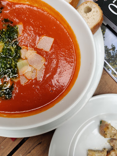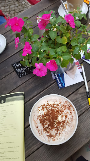 Read moreWhoo ich bin überrascht, es ist ein wundervolles Ambiente. Es erzählt eine wundervolle Geschichte, man tritt im Sommer herein die Terrasse verschmilzt förmlich mit der Natur. Menschen die sich unterhalten der grüne Streifen hinter dem man sich geborgen fühlt, die Tische sind mit den schönsten Blumen gedeckt. Wenn man nun in das Café hinein tritt, finden wir rechts einen Raum in dem sich die Bar und die Küche befinden. Außerdem gibt es weitere Sitzmöglichkeiten, wie z.b. eine elegante rote Couch. Abends erleuchten in dem gesamten Restaurant die Kerzen, man bekommt ein so heimisches und gemütliches Gefühl.