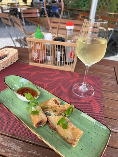 Preis: FĂŒr zwei alkoholfreie Hefeweizen, eine Cola Zero, einen Tee, eine Pekingsuppe, ein Hauptgericht mit Nudeln und HĂ€hnchen, Sommerrollen und gebackene Bananen haben wir inkl. Trinkgeld (4âŹ)...