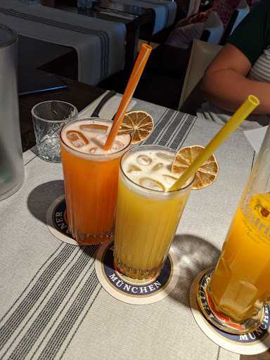 Ambiente: 4/5 Das Restaurant ist modern eingerichtet und trotzdem gemütlich. Auf der Terrasse sind die Plätze etwas begrenzt, weshalb wir als Gruppe innen saßen, was prinzipiell kein Problem dargestellt hat. Kleiner Nachteil hier, war die Musik die einfach zu Laut war. Darüber hinaus hat es in de Bereich der Sitzplätze etwas gehallt, was zu einer hohen Geräuschkulisse geführt hat. Noch eine Anmerkung auf hohem Niveau: Durch das Verstellen der Tische für unsere Gruppe war ein Teil der Tischlampen auf Kopfhöhe.