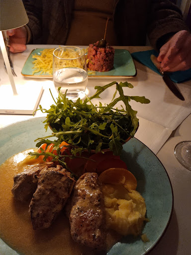 Read moreOne of the big disadvantages of living in Germany is the pervasive ignorance of l'onglet -- aka hanging tender, aka butchers' cut. In my view, it's the best steak. I had to try it at La Tarte when visiting Weimar. At first glance, I was underwhelmed; the meat looked overcooked and the servings of haricot verts and gratin potatoes were less than ample. But OMG! Everything was SO delicious. The onglet, while not as pink as I thought I wanted, was perhaps the most tender I've ever tasted. The gratin was a perfect balance of cheese and potato; the haricot verts, the thinnest I've ever seen, were perfectly cooked and salted. I may have to...