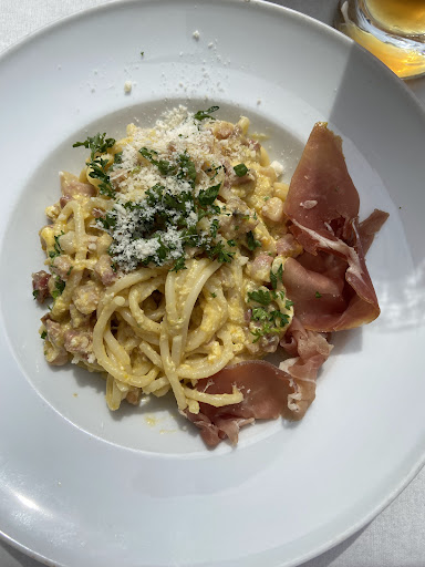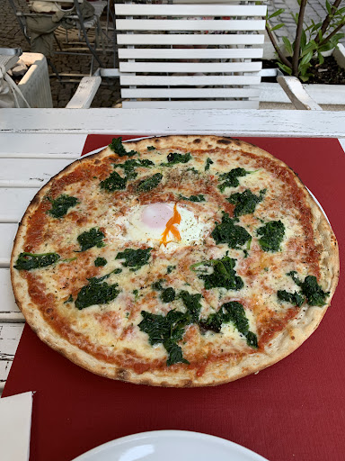 Read moreEin Restaurant, das sich leider auf der hervorragenden Lage und dem damit einhergehenden Besucherstrom ausruht... Positiv ist auf jeden Fall der Sitzbereich. Die Ausstattung innen hat Charme, außen kann man an zahlreichen Tischen im Schatten Platz nehmen. Wir sind zu zweit spontan zum Abendessen in das Restaurant gegangen. Das Bruschetta ist wirklich lächerlich gewesen. Halbierte Tomaten auf harten, trockenen Brotscheiben mit schwarzen Rändern und einer Menge Balsamicoessig darüber. 3 Stück für knapp 6,40€... Als Hauptgänge haben wir eine Portion Nudeln und eine Pizza bestellt. Beides dauerte zwar nicht lange, jedoch waren die Nudeln (mit einer viel zu großen Portion Streuselkäse obendrauf) wesentlich früher fertig und auf dem Tisch als die Pizza, sodass man nun die Wahl hatte: gemeinsam essen oder warme Nudeln. Als dann die Pizza kam wurde auch schnell klar: wenig Belag für viel Pizza. Den Gorgonzola musste man schon länger suchen und der TK-Spinat wurde nur häufchenweise auf der Pizza verteilt. Hinzu kam, dass das Salz auf dem Tisch seit fast 2 Monaten abgelaufen ist - kann passieren, sollte aber nicht. Während des Essens kam keiner der Mitarbeitenden an den Tisch, um nach dem Befinden zu fragen und auch danach warteten wir lange, um bezahlen zu können.