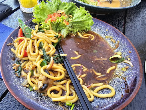 All the sushi dishes have cream cheese in them?! Why in the world?? The waiter didn't speak a word of english, I asked in German and hand gestures several times, no cream cheese, but the sushi arrived with cheese despite it. It was disgusting over all. Also covered in mayo. The main course was nice but it was served on one plate, both the hot dish and the side salad. The hot soya based souse mixed up with the vinigar based salad dressing, it was a mess!!! I have never seen anything like it. The Coco Love soup was delicious, but wad marked Dairy in the menu. There was no way knowing if it was dairy or vegan as there was no English speaking staff. The place itself is nice and bathrooms are clean.....