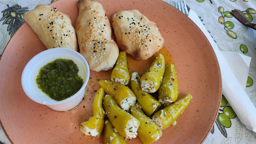 Alles wird frisch zubereitet. Das Brot kommt direkt aus dem Ofen. Selbst die gefüllten Peperoni wurden noch frisch zubereitet. Dazu gab es einen sehr feinen Joghurt Dip mit Kräuterpesto! Und dazu sind die Leute auch super freundlich. Sehr zu empfehlen!