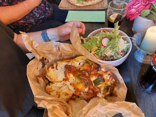 Read moreWir waren an einem Dienstag Abend dort und haben einen Chicken Burger mit Süßkartoffelpommes und einen Flammkuchen bestellt. Leider kam das Essen erst nach einer Stunde und mein Burger kam nochmal 15 Minuten später als das Essen meiner Freundin. Das Hühnchenfleisch auf dem Burger war qualitativ sehr gut, allerdings war es ein Hähnchenbrustfilet, das dementsprechend groß war und es mir unmöglich machte meinen Burger auch nur geschnitten zu essen, stattdessen musste ich meinen Burger "getrennt" essen. Meine Süßkartoffelpommes waren total latschig was ich auch der Chefin sagte. Diese erwiderte einfach nur unfreundlich "Okay". Ich habe nichts erwartet allerdings wäre ein "Das tut mir leid" angebracht gewesen. Die Dame im Service war sehr nett, nur leider als einzige Bedienung an dem Abend eingesetzt, dementsprechend überlastet. Wenn man mal nur etwas trinken gehen möchte, ist dies weiterzuempfehlen, aber nochmal essen würden...