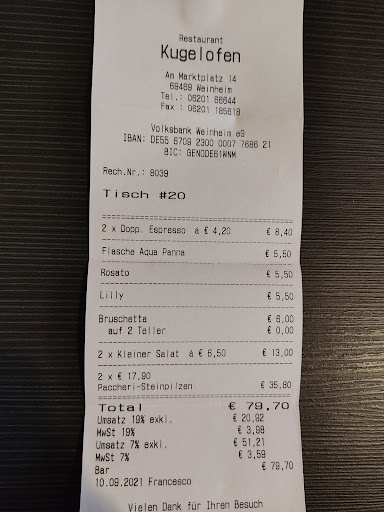 Preislich lagen wir (ohne Weinflaschen) bei 3 Vorspeisen, 4 HauptgĂ€ngen und 3 Desserts bei 130âŹ. Das ist fast schon zu gĂŒnstig. Als Gast freut es einen natĂŒrlich.
