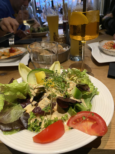 Das Essen kam in guten Timing, war heiĂ und gut bĂŒrgerlich angerichtet. Auf eine ĂŒbertrieben moderne Tellersprache wird verzichtet. Als Italiener kann ich sagen: Wie bei Oma in der Toskana! Geschmacklich kann man sich beim besten Willen nicht ein bisschen beschweren. Das Pizzabrot perfekt, die Salate frisch mit tollem Dressing, die Pastagerichte al dente, die HummersoĂe sowas von lecker, die Pizza mit tollem Rand und Boden und gutem Belag. Die Desserts sind bodenstĂ€ndig, aber auch hier nicht 0815. Das dreierlei Sorbet ist geschmacklich tadellos, das Schoko-TrĂŒffel-Orange-KĂŒchlein mit flĂŒssigem Kern ĂŒberzeugt groĂ und Klein.
