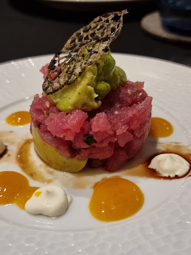 We visited the fine restaurant for the first time and were really impressed by its surprisingly good performance. The entity is small but the seating arrangement is comfortable and the atmosphere was relaxing and good. We felt welcomed and were provided with top class table services - well attended with smiles and courtesy without being pushed or ignored. The meals and drinks were also surprisingly good. We could feel the attention made in the choice of good-quality ingredients and how they were prepared and presented, starting from the complimentary bread and spread, the fine choices of alcohol- and non-alcohol drinks, the meals (the tastes, textures, fragrance and presentation) and even the tableware. I loved that the meals were very well-prepared and authentic - not over-processed, and they did not have the taste of artificial glutamate. For example the starter truffle fries: the truffle was freshly grated in handsome amount on the fries and every bite was very fragrant. I also liked that the portion of the food and drink was adequate, which allowed us to enjoy and finish a full course of meal (each of us finished a half bottle of water, a glass of champagne, a glass of wine, complimentary breads with spreads, half portion of truffle fries, a main course, a couese of dessert and a cup of coffee including complimentary sweet!) without leaving food waste or drink waste and still had a comfortable stomach when we left.