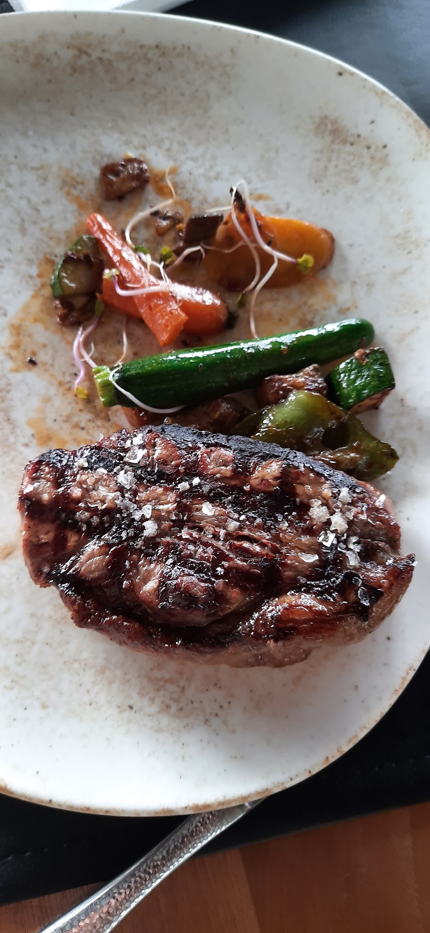Dann endlich war die Vorspeise hat und geschmacklich war es auch gut. Nachdem wir die Vorspeise verzehrt haben, kam der Hauptgang und das auch etwas verzögert. Wir hatten 4 mal Argentina Filet bestellt, die 303 auf der Karte. Wir haben aber Rumpsteak bekommen. Die Kellnerin hatte uns erklärt, sie hätte uns falsch verstanden. Das kann mal passieren, Fehler sind menschlich. Mir persönlich hat es dann alles zu lange gedauert und ich wollte mit meinen Gästen aufstehen und gehen. Es würde nämlich nochmal ewig dauern bis die richtige Bestellung auf den Tisch kommt. Die Kellnerin jedoch bestand drauf, dass wir das falsche Essen einpacken lassen sollen und komplett die Rechnung zahlen sollen. Das finde ich aber eine Frechheit, da der Fehler von ihr ausgeht. Sie hat die Bestellung falsch aufgenommen. Eine 2. Kollegin hatte daraufhin nochmal betont, dass sie die Steaks nicht aus der Rechnung nehmen kann. Weshalb auch immer. Nach langer Diskussion kam der Chef und hatte ihnen gesagt gehabt, sie sollen es aus der Rechnung nehmen, sodass wir nur die Vorspeisen zahlen sollen. Der Chef war sehr zuvorkommend, jedoch sollte er nochmal überdenken wen er als Kellnerinnen einstellt.