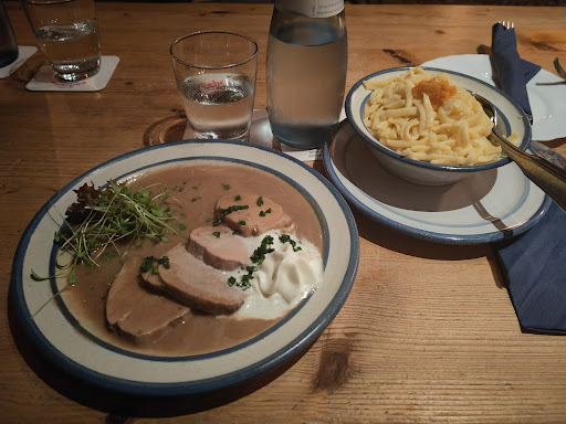 Regionale Weine sind hier gesetzt und die Speisekarte ist überschaubar, was für mich ein Qualitätsmerkmal ist. Wir hatten zwei Gerichte mit Maultaschen sowie einen Salat dazu. Die Maultaschen sind selbstgemacht und wirklich mega lecker 🤤