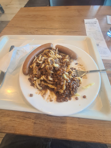 Read moreIch bestellte das mittelgroße Schnitzel mit Spätzle und Soße für 10 Euro. Auf den Teller bekam ich zwei kleine dünne zusammengeschnorrte crosse Fertigschnitzel, dazu Spätze mit fader Soße aus der Tüte. In einem SB-Imbiss erwarte ich keine kulinarischen Höchstleistungen, aber ein bisschen mehr könnte man selbst für diesen Preis...