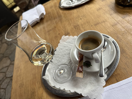 Auf der großen Tafel waren 4 Desserts ohne Preise angeschlagen. Wir entschieden uns für einen einen doppelten Espresso im Glas mit einem Bällchen Vanilleeis, was sich in der Rechnung mit stolzen 10€ niederschlug.