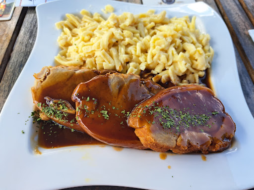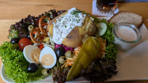 Read moreDas Wirtshaus Wildpark-Alm ist ein rustikales, sauberes und gepflegtes Lokal. Die Bedienungen waren sehr freundlich und aufmerksam. Die Getränkebestellung wurde auch recht schnell aufgenommen. Bei einigen Gerichten die Möglichkeit besteht, sich am Salatbuffet seinen eigenen Beilagen Salat zusammen zu stellen. Ansonsten werden die Gerichte aus einer gut bürgerlichen Karte gewählt. Trotz vollem Lokal zur Mittagszeit an einem Sonntag, kam das Essen auch recht zügig, für meinen Geschmack schon zu zügig, was drauf schließen lässt, dass viele Gerichte schon vorbereitet sind und die Speisen einfach nur warm gestellt sind. Leider bewahrheitete sich das auch beim Essen. Die Suppen waren geschmacklich ok. Die Bratkartoffeln waren sehr fettig und schon zu durchgebraten, was eher fürs Warmhalten statt frisch braten spricht. Nudeln und Pommes waren auch OK. Die Saucen waren leider salzig und überwürzt, hier liegt meine Vermutung sogar auf Fertigsaucen oder zumindest mal bei Zusätzen und nicht selbst Hergestellte Saucenbasen. Die Fleischgerichte waren für ein gut bürgerliches Lokal auch ok. Die Gerichte selbst sind von der Menge her gut portioniert, hier sollte jeder satt werden. Leider ist die Auswahl an vegetarischen Gerichte fast ausschließlich auf Salate beschränkt. Das Lokal besitzt eine Terrasse mit schönen Ausblick. An schönen Tagen kann man hier stundenlang die frische Luft und den Ausblick genießen. Zum Beine vertreten ist auch bestens gesorgt, hier lädt der Wildpark zum Spazieren ein, sowie ein recht großer Spielplatz an dem sich die Kids austoben können. Für Parkplätze ist auch gut gesorgt, in direkte Nähe befinden sich so 10 Parkplätze und ich 100m Entfernung ist nochmals ein großer Parkplatz. Abschließend, als Ausflugsziel zum entspannten Sitzen auf der Terrasse nach einem Spaziergang im Wildpark, ist das Wirtshaus Wildpark-Alm immer geeignet. Die Athmosphäre passt zum Wildpark und das freundliche Personal laden dazu ein. Sollte einen dann noch ein Hüngerchen überfallen, lohnt auch noch ein Blick in die Speisekarte, aber für unseren Geschmack extra dorthin essen zu fahren...