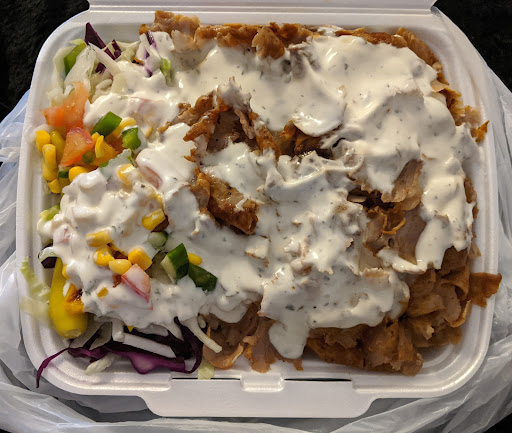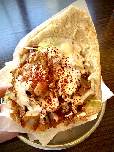 supergood lahmacun and cheap with the best garlic sauce, the can also put in apple, tastes good. it has the meat and salad and wrapped in tinfoil to keep hot. klaus always pays his calamari - they tried to charge him twice -...