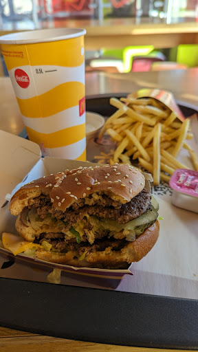 Die Pommes waren völlig gewürzlos und nicht ganz durch, der Burger okay. Als ich schließlich mit Essen fertig war, kam meine Kollegin - die zeitgleich mit mir bestellt hatte - gerade erst mit ihrem Essen dazu.