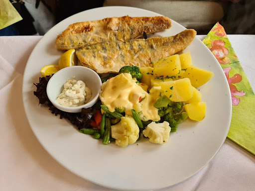 Für ein Wochenende sind wir in Weiterstadt und durch Zufall hier eingekehrt weil es von außen schön voll ausgesehen hat. Es war sehr voll 🙂 Wir wurden, trotz Hund, sehr herzlich empfangen, zum Tisch begleitet und unser 3G Status wurde kontrolliert. Die Bedienungen waren die ganze Zeit sehr freundlich und aufmerksam. Das bestellte Essen kam sehr schnell und war super heiß! Als Vorspeise hatten wir Champions in Weißwein-Knoblauchsoße -ein Gedicht!!- und Knoblauch-Kräuterbrot. Der Beilagensalat war sehr frisch, der Hausdressing leicht und lecker. Nachdem wir jetzt schon sehr gut gesättigt waren gab's zur Hauptspeise das gefüllte Hacksteak und Pola Pola. Wow!!! Riesen Portionen und SUPER lecker! Zusammen mit 3 Getränke haben wir sehr sehr gerne 54€ bezahlt. Für das gesamte Paket geben wir gerne eine Rezession ab und bedanken uns für den schönen Abend! Weiter so, sehr zu...
