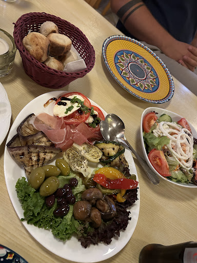 Read moreEs war sehr viel los. Die Bedienung stand im Schweiß und war wirklich sehr schnell und freundlich. Das Essen kam den Umständen entsprechend doch recht schnell. Die bestellte Thunfischpizza war sehr lecker und Preis Leistung super. Die Pasta für meine Tochter war auch sehr lecker und reichlich. Doch, und daher meine schlechte Bewertung, gab es auch Beanstandungen. Es wurde ein Traubensaftschorle und eine Johannesbeerschorle bestellt. Es war beides das selbe. Hat trotzdem geschmeckt. Es wurde eine Flasche mit einem Liter stillen Wasser bestellt und bezahlt, doch gebracht wurde eine Flasche mit 0,75 Liter. Wir haben eh nicht mehr getrunken, daher auch Schwamm drüber. Aber das Pizzabrot für meinen Sohn, ohne alles (also kein Knoblauch) kam trotzdem mit Knoblauch und sehr schwarz/verkohlt. Da er großen Hunger hatte, haben wir ihm die essbaren Stücke herausgeschnitten. Nach wenigen Happen hatte er genug. Doch die Scampi und Lachs Platte für 26,50€ für meine Frau war ihren Preis nicht wert. Zunächst wurden nur ganze zwei Scampi und ein kleines Lachsstück serviert und zusätzlich nicht bestellt zwei Muscheln und ein Tintenfisch, der jedoch ungenießbar war. Das war alles andere als gut. Leider haben wir wegen unserer Kinder keine Zeit und Muße gehabt vor Ort zu reklamieren, daher mache ich dies nun mit dieser doch mehr schlechten als rechten Bewertung. Wir gehen da jedenfalls...