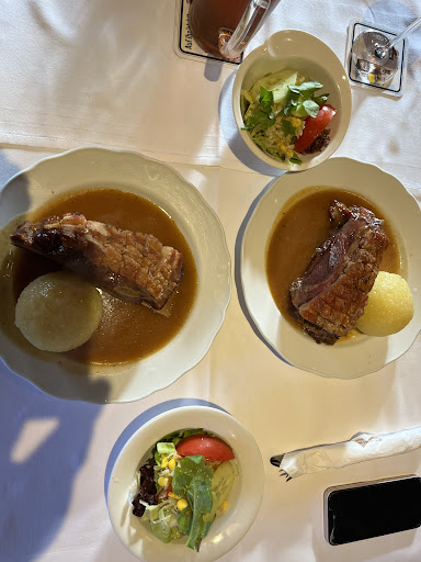 Wir waren vor einiger Zeit das 2. Mal in diesen Gasthof zu einer Feier eingeladen. Bei unserem 1. Besuch wurde die Feier von einer unfreundlichen Bedienung nach 1.00 Uhr aufgelöst mit dem Hinweis, "sie müsse schließlich am nächsten Morgen wieder aufstehen und Getränke gibt es keine mehr" obwohl den Gastgebern vorher extra versprochen wurde, dass es keinen "Zapfenstreich" geben würde - das Essen war damals OK. Nun zu unserem 2. Besuch - hier war wohl von vornherein geklärt, dass um 24.00 Uhr Schluss zu sein hat und die Gastgeber einverstanden. Aber nun zu den Katastrophen: Die Servicekraft - 1 für eine Feier mit etwa 40 Gästen - war gelinde gesagt unmöglich, z.B. war ein Teller zu viel und dieser wurde auf einen freien Platz gestellt um essen zu können "wem gehört denn dieser (Tatscht mit den Fingern oben auf) Teller, kann man doch nicht einfach abstellen, also geht doch nicht", oder auch "was Sie wollen jetzt noch was trinken, in 30 Minuten ist Schluss", auch schön als die Gastgeber gehen wollten und, wie vereinbart, den Schmuck und die Geschenke stehen ließen um sie am nächsten Tag zu holen "was ist denn mit ihrem Zeug da, sollen wir das wegschmeißen" und noch etliches mehr. Klar muss sie immer eine steile Treppe hoch um das essen zu bringen und mehr als 2 Teller konnte sie nicht tragen, aber ich möchte sagen, das hatte sie gewusst als sie dort zu arbeiten begann. Nun zur Qualität, oh je, wie will man das sagen?! Das offen in Karaffen ausgeschenkte Wasser war ungenießbar, es schmeckte nach purem Salz, also wahrscheinlich ein sehr, sehr billiges Wasser, das Pils dagegen, schmeckte abgestanden. Als Vorspeise gab es weißen und grünen Spargel, ich wusste bis zu diesem Essen nicht, dass es möglich ist, das "Königsgemüse" so zu versauen. Der Spargel war richtig hart also nicht weich gekocht, er schmeckte wie roh, holzig war er obendrein und gewürzt war er mit Maggi. Ich finde es ist eine Frechheit, so etwas zu servieren, zumal ich davon ausgehe, dass dies ja auch nicht die günstigste Vorspeise ist. Was das Hauptessen angeht, die zum Fisch gereichten Salzkartoffeln waren mehlig, das Fleischgericht zu wenig und das vielgepriesene Schäufele bekommt man bei uns am Land in jeder Kneipe in besserer Qualität zumal das dazugereichte Kloß furchtbar geschmeckt hat, es war hart, schmeckte wie aufgewärmt. Als Fazit kann ich nur sagen, dass mir die Gastgeber richtig leid getan haben, man zahlt viel Geld für eine Feier und es soll ein rundum gelungener Abend werden, der durch schlechtes Essen und schlechten Service...