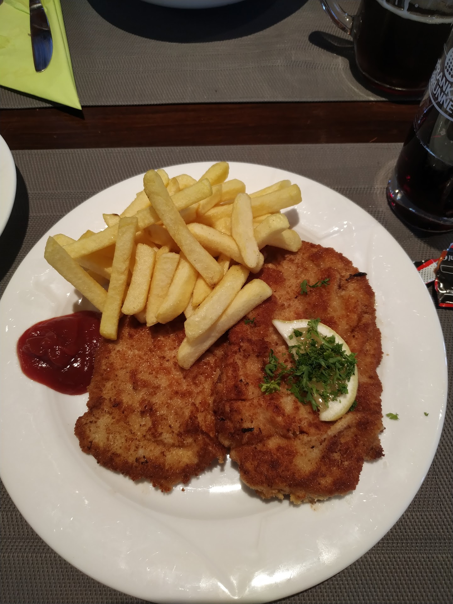 Das Schnitzel immer noch genial gut. Die Ravioli mit Tomaten genial abgeschmeckt.