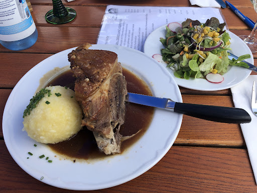 Update 17.07.2018: Ich war zum Essen geladen und bin dem Aufsteller der eine Grillhaxe anpries auf den Leim gegangen. Aufgewärmt, Trocken, Chemiesauce und Knödel dazu. Kartoffelsalat hätte besser gepasst und man hätte keine Packungssauce anrühren müssen. Tageskarte hatte über 20! Gerichte drauf ... zusätzlich zur normalen, bereits überfüllten, Karte. Viel Convenience Food dabei. Naja.