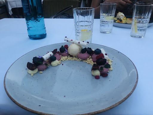 Read moreVöllig überlastetes, aber bemühtes Personal. Offene Küche nur angenehm, wenn man draußen sitzt (mit sehr schönem Blick aufs Wasser), sonst zu laut um sich noch gut zu unterhalten. Kleine Karte, bei der dann ausgerechnet das Fischgericht bereits aus war. Unsere Bedienung musste 3 Mal unsere Getränkebestellung nachfragen, um am Ende doch das Falsche zu bringen. Zubereitung des Essens dauerte eine gefühlte Ewigkeit. Wir haben für ein Fleischgericht mit 2 Stück Fleisch (bestellt: 1x Medium, 1x well done. Bekommen: 2x irgendwas zwischen medium und well done), einer halben Fenchelknolle (die zugegebenermaßen sehr gut zubereitet war) mit etwas Soße (auch diese gut) und einem kleinen Töpfchen Kartoffelbrei (schmeckte wie aufgewärmt!) jeweils 33€ bezahlt, für eine Flasche Wasser 10€ (die wir eigentlich nicht bestellt hatten). Am Ende gab es eine Entschuldigung wegen technischer Probleme in der Küche und das Dessert aufs Haus. Mussten wir ablehnen, da es bereits zu spät war und wir los mussten. Für technische Probleme kann niemand etwas; für fehlende Transparenz und Aufklärung der Gäste schon. Obendrein stimmt hier das Preis-/Leistungsverhältnis nicht, das Personal wirkte wie frisch eingestellt und nicht...