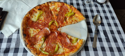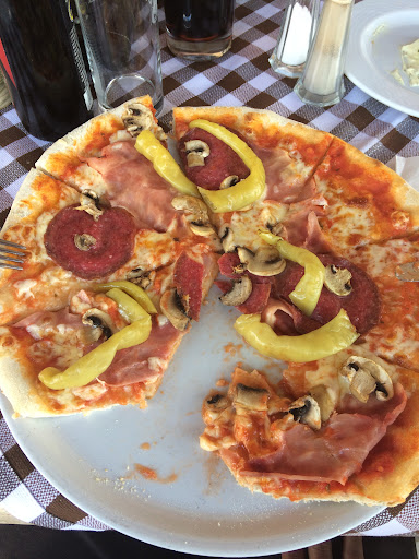 Read moreDas Lokal verfügt über eine schattige Terrasse. Das Angebot auf der Karte ist groß. Vor dem Hauptgang gibt es Brot mit Knoblauchcreme, hier muss an der Aufmachung gearbeitet werden. Diese freundliche Geste war leider sehr lieblos angerichtet. Die Pizza war dann reich belegt und im Allgemeinen schmackhaft, jedoch war der Teig etwas dick. Überhaupt schien sie etwas fettig zu sein. Die Portionsgrößen waren den moderaten Preisen sehr angemessen. Die Bedienung war sehr freundlich, die Bestellungen wurden schnell bearbeitet.