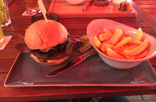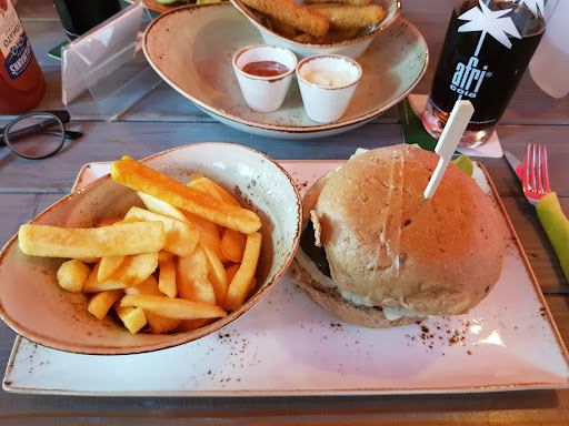 Nice restaurant, good seating, friendly service. When ordering a hamburger, take in consideration that they are not signature or dehli kwality. It looked and tasted like deep frozen stuff and was not served medium or rare but quite overcooked. That, to me is always a bummer. Fries were okay, a little dry but you get plenty of mayo or ketchup with it. A whole bottle even which I liked compared to all the little frugel dots in most...