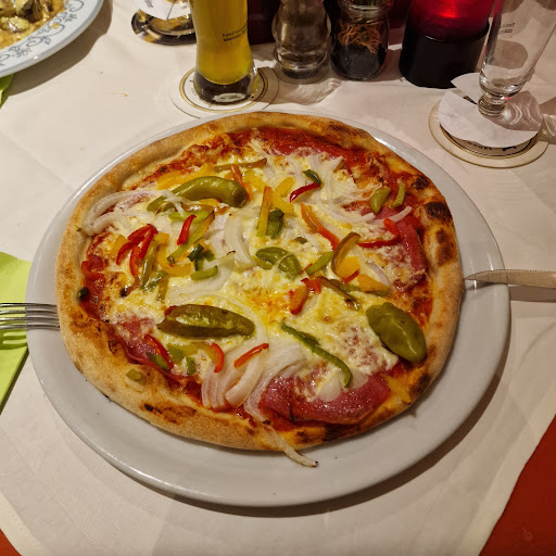 Read moreNun ja was soll ich sagen ...nachdem wir 10 Minuten gesessen haben kam auch mal eine junge Dame und fragte nach Getränken !!! Nach weiteren 20min wurden wir nach unserer essensbestellung gefragt !! Tik tak tik tak nach einer geschlagenen Stunde kam auch mal das Essen 2mal Tortellini 1mal macaroni 1steak 2mal schweinefiletköpfe und 2 Pizzen!!! Nun ja geschmacklich hatte ich ne Pizza die vom Boden her super war aber Belag technisch leider sehr mau ausgefallen ist !!probiert habe ich auch einen filetkopf der sehr weich und zart war aber die Soße wenn man es so nennen kann war mehr hollondaise also schmeckte man nur sie !!! Probiert habe ich auch 1mal Tortellini mit schinken Sahne sauce meiner Meinung nach sehr sehr viel Butter in der sauce Gewürze mhh Na ja hätte mir mit etwas Muskat und ein wenig mehr von allem besser geschmeckt war halt sehr schwer im Bauch wegen dem ganzen Fett....preislich muss ich sagen .....Preis Leistung NICHT erfüllt ! Nun gut muss nicht noch einmal sein und ich bin froh das wir eingeladen worden sind sonst währe ich schon ein wenig sauer wegen dem...