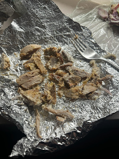 Ich habe eine kleine Pizza mit Gyros und Peperoni, 2 Schaschlikspieße mit Reis und einen Gyrosteller bestellt. Die "kleine" 26cm Pizza war ein ordentliches Gerät. Reich belegt mit sehr saftigen, eher milden Peperonis und Gyros. Zwiebeln wurden abbestellt, Peperonis dazubestellt. Extrawünsche funktionieren. Pizza war klasse. Das Schaschlik war zart, von innen leicht rosa, so wie es sein soll. Reis schmeckt wie Reis. In Kombination mit der Sauce vom Schaschlik wirklich gut. Das Gyros ist top. Super zartes und schmackhaftes Fleisch. Für mich persönlich könnte es einen Tick mehr Würze vertragen. Aber das ist Geschmackssache und keine Kritik!