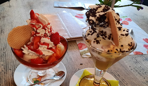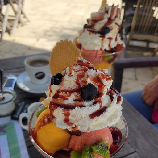 Bei den Speisen fällt allerdings auf, dass einige sehr süß waren, was nicht jedermanns Geschmack trifft. Die Eiskarte ist jedoch beeindruckend, mit einer Vielzahl von Optionen, die sowohl traditionelle Favoriten als auch einige einzigartige Kombinationen bieten, wie den "Alter Schwede" und "Baileystraum". Auch die Möglichkeit, seine eigene Bubble-Waffel zu kreieren, ist ein besonderes Highlight.