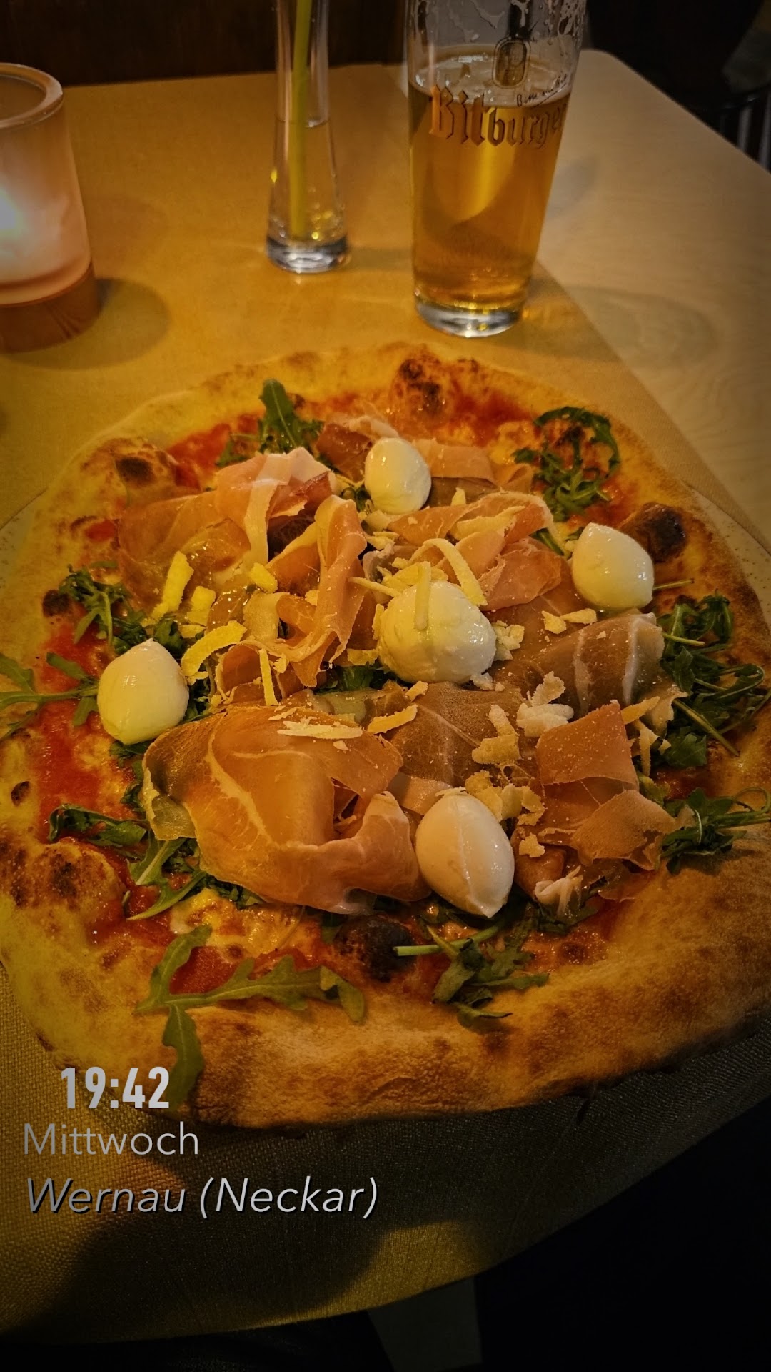 Read moreFreitag Abend um 9 Uhr waren wir zu dritt hier verabredet. Im Restaurant war sonst nur ein weiterer Tisch mit drei Personen besetzt.! Die bestellte Pizza die etwas dunkel geraten ist war insgesamt schmackhaft aber auch nichts besonderes. Das Ambiente spricht mich persönlich nicht sehr an. Was mir garnicht gefällt sind die schlechten Bilder von Gerichten die unter der Decke hängen. Sieht aus wie bei einem Imbiss o. Dönerladen. Die Weingläser waren mit Kalkflecken überzogen. Kann passieren darf es aber eigentlich nicht. Der Service war anfänglich ganz ok hat dann aber auch recht zügig nachgelassen. Der Herr was uns bedient hat (ich meine das er auch der Chef ist) war nur noch an seinem Tresen mit irgend welchen Dingen beschäftigt. Er war etwas verhalten freundlich aber italienische Gastfreundschaft kenne ich anders. Wirklich willkommen hat man sich nicht gefühlt. Nach der Pizza kam auch keiner mehr an den Tisch und fragte ob es noch was sein darf. Das WC befindet sich außerhalb des Restaurants! Man muss also bei strömenden regen vom Tisch aufstehen und um das Haus laufen. ( Hier könnte man auch einen Schirm für die Gäste hinlegen !!!) Nun steht man dann vor dem Eingang von einem Mehrfamilienhaus. Die Türe ist nicht verschlossen und kann einfach aufgedrückt werden. Leider ist hier auch nichts ausgeschildert wo es zur Toilette geht. In einem kleinen dunklen Kellerraum befeindet sich dann ein WC was für Männer und Frauen ist. Die Toilette war sauber aber in dem kleinen Kellerraum war es eiskalt. Ich möchte bestimmt keinen schlecht machen. Ich schildere nur das was ich an diesem Abend...