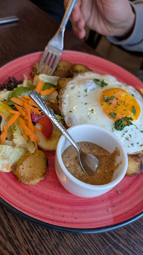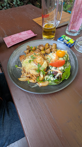 Read moreBesuch zum Mittagessen am 4.3. gegen 1215 Uhr: Inhaber Tim hat mir extra die beiden Flügeltüren aufgemacht damit ich mit meinem Elektromobil ins Restaurant reinfahren konnte! Sehr sehr guter Kundenservice! Restaurant war bis auf einen Tisch fast voll und somit gut besucht. Von der Übergabe der Speisekarte, Bestellung aufgeben, Essen und Getränke bekommen alles Ruck Zuck und mit einer Freundlichkeit die ihres Gleichen sucht, absolut Top! Wir haben einmal den Leberkäs mit Bratkartoffeln und Spiegelei sowie die Bandnudeln mit Rahm Champignons - beides von der Mittagskarte zu je 8,00 Euro - bestellt. Menge vollkommen ausreichend ( außer für schwer arbeitende Menschen) Geschmack beide erste Klasse super lecker. Alles in allem sehr empfehlenswert! Tolle Inhaber, tolle Köche! Vielen lieben Dank...