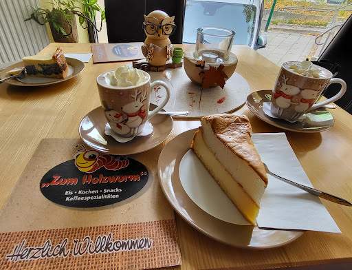Nach einem Ausflug zur Burg Regenstein haben wir uns gedacht, dass wir uns doch noch kurz in ein Café in der nahen Umgebung setzen könnten. Unsere Wahl ist auf das Café "Zum Holzwurm" gefallen. Parkplätze sind aufgrund des nahegelegenen Supermarkts ausreichend vorhanden. Ein wenig versteckt gelegen haben wir es dann aber auch gleich gefunden, wo wir freundlich begrüßt wurden. Neben einer kleinen Auswahl an selbstgemachtem Kuchen und Keksen findet man auch noch diverse Eisbecher in der Speisekarte. Wir waren zu viert und haben verschiedene Kuchen und Kekse probiert und sind alle zu dem gleichen Ergebnis gekommen. Sehr sehr lecker. Die Kuchenstücke waren riesig und der Magen war mehr als gut gefüllt. Unser Sohn hat neben einem Eis ( da macht man nie etwas verkehrt) noch einen ebenso leckeren Osterhasenkeks verspeist. Da die Osterzeit auch schon mit großen Schritten näher kommt, war das Café bereits entsprechend schön dekoriert. Das Ambiente hat uns gut gefallen. Freundlicher Service, gemütliche Einrichtung und lecker Speis und Trank. Uns hat es gefallen... es gibt nichts zu meckern... und wir kommen...