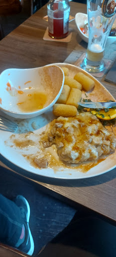 Das Restaurant selbst bietet ein uriges und mittelklassiges Ambiente - nicht luxuriös, aber auch nicht heruntergekommen. Es ist genau das Richtige für einen gemütlichen Abend. Geschmacklich waren die Hauptspeisen durchweg positiv, besonders das Schnitzel hat überzeugt. Mein Hähnchengericht war lecker, aber nicht herausragend. Ein kleiner Kritikpunkt wäre die Menge an Sauce und Dressing, die bei unseren Gerichten etwas spärlich ausfiel.