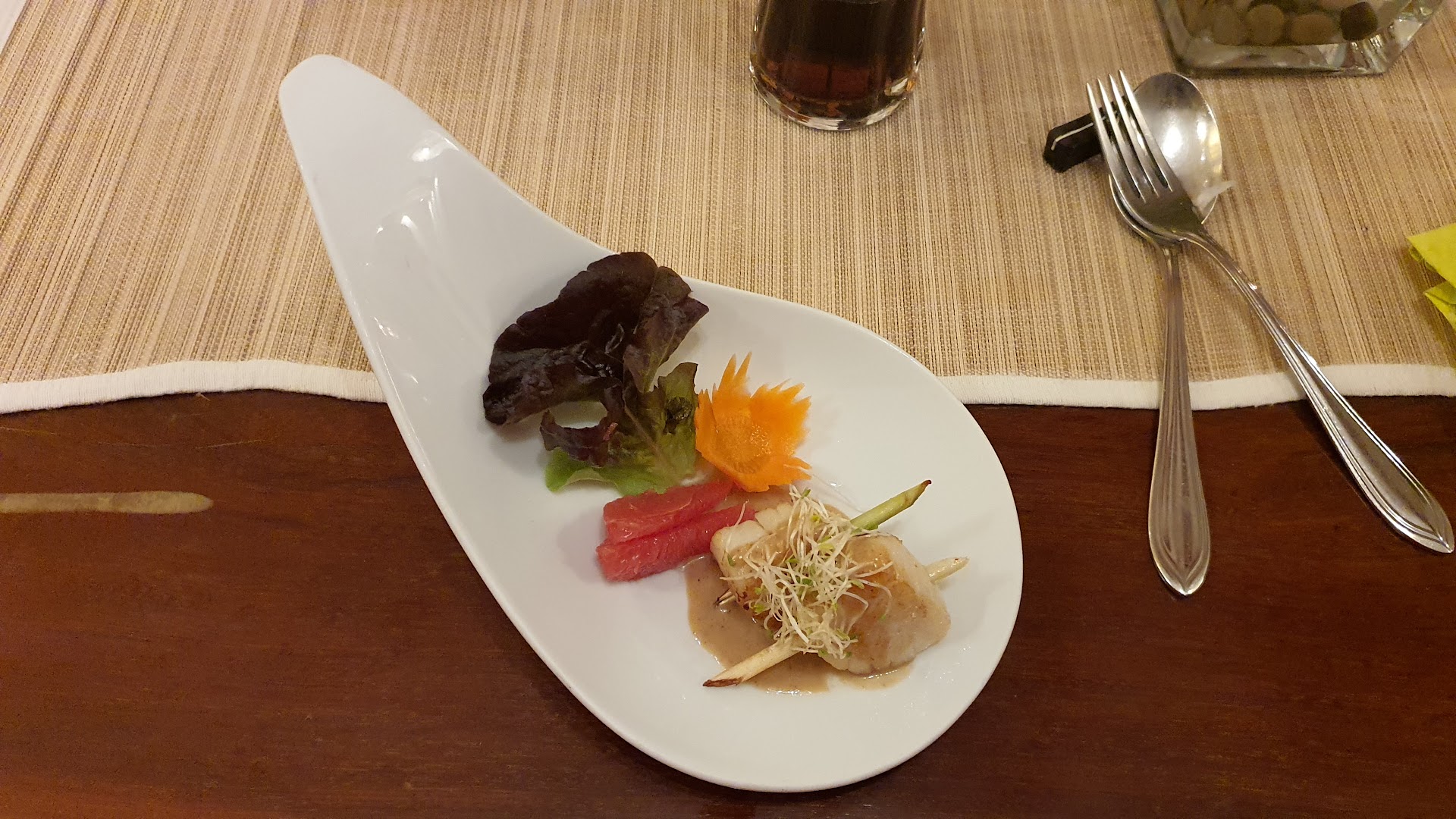 I had spring rolls & butterfish pho as entrée both were delicious I was especially suprised by the pho. The soup was a little spicy and a tad sour it was great.