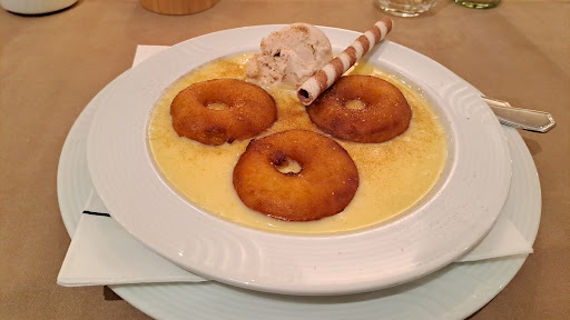 Read moreAlles in allem war dies einer der enttäuschenderen Restaurant-Besuche. Tatsächlich war nur ein Kellner wirklich bemüht (er hätte 5 Sterne verdient), alle anderen wirkten überfordert, desinteressiert und völlig fehl am Platz. Trotz Reservierung bekamen wir keinen konkreten Tisch zugewiesen und alle freien Tische, waren noch mit schmutzigem Geschirr und/oder Tischdecken versehen. Der Tisch unserer Wahl wurde zwar abgeräumt, die fleckige Tischdecke jedoch blieb. Servietten gab es auch keine frischen und der bereits bei der Reservierung angeforderte und erst auf erneute Nachfrage vor Ort herbeigebrachte Kinderstuhl war auch schmutzig. Das Essen war okay, wenn man es in Relation zu einem einfachen Imbiss um die Ecke setzt. Der Anspruch dieses Restaurants erschien mir jedoch höher und dem konnte das Essen nicht gerecht werden. Preislich bewegte ich mich mit über 70 Euro für zwei Erwachsene und zwei Kinder auch im höheren Segment, was damit meiner Meinung nach auch nicht im Verhältnis zum gebotenen Essen und Service stand - Inflation hin oder her. Zusammenfassend gibt es hier also deutlich...