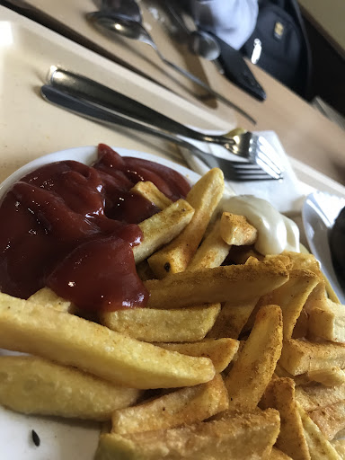 Es tut mir beinahe leid aber ich kann diese Location mit keinem guten Wort beschreiben egal wie lange ich nach etwas Positivem suche. Nachdem man viele Stunden und Kilometer gelaufen ist und sich tierisch auf einen Happen essen und was zu trinken freut sieht man als erstes ein Riesen Schild: Hunde verboten! Okay das ist ärgerlich aber legitim also haben wir mit den Hunden in einer Art Vorzimmer an einem Stehplatz unser Quartier aufgeschlagen und wir Männer sind rein um etwas zu essen zu bestellen. Da erwartete uns schon der nächste Schock: 8€ für eine Currywurst mit Pommes aus der Tiefkühlabteilung! Wow! Und gelächelt hat das Personal auch schon sehr lange nicht mehr, ganz zu schweigen von einem freundlichen Ton. Nachdem wir dann für knapp 17€ zwei Pommes (pur und sogar fast ohne Salz!) Und zwei Getränke gezahlt haben wollten wir zurück zu unseren Frauen und den Hunden um im stehen zu essen, da kamen uns die 4 schon entgegen und berichteten, dass gerade eine besonders unfreundliche Dame (und es ist wirklich schwer noch unfreundlicher zu sein als die restlichen Saftschubsen dort) sie im Vorzimmer eingesperrt hat und NACH dem absperren noch in die Runde raunte "Könnt ihr nicht lesen, ihr müsst jetzt hier raus!". Dabei zeigte sie auf ein Schild welches sie wenige Sekunden vorher erst aufgestellt hat und welches kurz und knapp mitteilte: "Geschlossen". Auf die Frage wie man den raus solle hieß es wohl , man könne ja außen lang gehen! Wohlgemerkt durch den Saal wo Hunde verboten sind. Nachdem wir dann noch eine ruhige Ecke gefunden hatte wo man uns zumindest tolerierte, haben wir noch eben unsere labrigen Pommes runtergewürgt und noch während wir den zähen Brei zerkauten fing eine auffallend schlecht gelaunte Frau auch schon an die Tische zu "putzen". Wobei "putzen" das falsche Wort war denn eigentlich hat sie mit großer Sorgfalt versucht die auf dem Nebentisch liegenden Essensreste mit überraschend hoher Zielgenauigkeit auf uns Gäste zu schießen. Mindestens eine Pommes landete dabei auf der Hose unserer Begleitung und einige andere nicht definierbare Essensreste wurden über den Hunden verteilt. Naja die haben sich zwar gefreut aber ob das so gesund für die Hunde war mag ich bezweifeln. Zeitgleich hat eine andere Angestellte am Nebentisch eine völlig verzweifelte Mutter mit ihrem weinenden Kleinkind rausgeschmissen. Erneut vielen die Worte "Leute die nicht lesen können!". Ich meine ich will ja nicht unhöflich sein oder gar beleidigend sein aber wenn die unfreundliche Saftschubse (Sorry aber was netteres fällt mir zu den Wuchtbrummen nicht ein) in der Schule besser aufgepasst hätte dann könnte sie vielleicht auch einen Job ausüben der ihr mehr Spaß macht anstatt anderen Leuten die vermutlich bessere Karrieren eingeschlagen haben darin zu beurteilen wie gut sie lesen können.