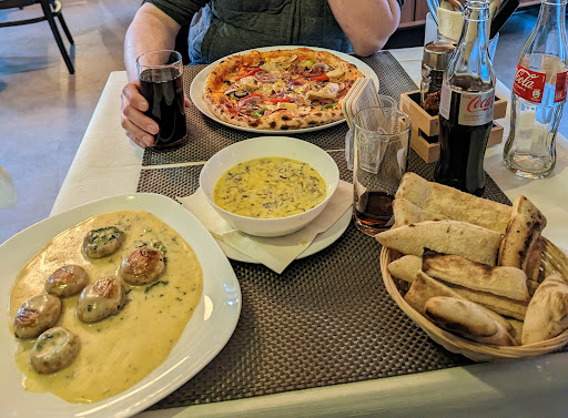 Wir waren heute Abend im Restaurant essen. Wir haben 3 Pizzen, eine Portion Pommes und die Vorspeisen Kleiner Salat und Focaccia bestellt. Die Probleme fingen bereits mit dem Betreten des Lokals an, wir wurden zunächst von einer Dame vertröstet und von dem Kellner ignoriert. Dann wurden wir aber nach einigen Minuten zu einem Tisch gerufen. Dann durften wir bestellen. Leider war es nicht möglich, einen mit Wasser verdünnten Saft zu bekommen, sodass die Getränke nur einzeln bestellt und selbst gemischt werden konnten. Es wurde uns auch eine Speisekarte gereicht, von den Schätzungsweise 20 Pizzen auf der Karte, konnten aber nur 4 Variationen und diese auch nur in klein bestellt werden, da große Pizzen "aus" waren. An den Nachbartischen konnte man auch mitbekommen, dass z.B. bestimmte Nudelsorten nicht mehr verfügbar waren. Außerdem haben wir unser Besteck an den Nachbartisch abgegeben, damit die Gäste erstmal essen konnen. Sonderwünsche waren weder bei Getränken noch bei den Speisen möglich. Hinzu kam leider auch, dass der Kellner sehr unfreundlich und keineswegs verständnisvoll war. Die Servicekräfte haben auch immer wieder noch während wir gegessen haben gefragt, ob die Teller schon abgeräumt werden könnten. Außerdem wurden wir noch während dem Essen mit der Rechnung am Tisch besucht mit der Frage, ob wir und wie wir bezahlen möchten. Auf die Gerichte haben wir fast eine Stunde gewartet. Nun zu den Speisen: Die Vorspeisen kamen nicht als Vorspeisen, sondern zum Hauptgericht. Die Pizzen waren am Rand von oben schwarz, der Belag ist auf der Pizza geschwommen und beim Aufschneiden schwamm die Pizza selbst dann auch auf dem Teller. Den Salat konnten wir nicht essen, da er vollkommen versalzen war. Diesen haben wir zurückgehen lassen. Das Focaccia war viel zu ölig und der Knoblauch darauf verbrannt. Aber immerhin waren die Pommes zwar nicht besonders gut, aber ganz ok. Da die Gerichte alle nicht besonders lecker waren, würde auch keine der Speisen vollständig verzehrt. Die Kritik am Essen wurde mit "ja, Geschmäcker sind ja immer verschieden" abgetan. Nachdem wir für den "Service" kein Trinkgeld gegeben haben, wurden wir von dem Kellner nicht einmal mehr verabschiedet. Auf ein hinterhergerufenen "Schönen Abend noch" gab es keine Reaktion. Dieses Lokal kann ich leider...