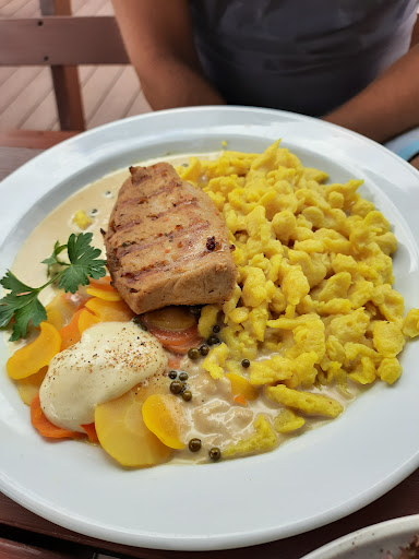 I wanted to give it 3 starts but my husband liked his food and told me to rate it with 4 stars. We were there at lunch time, i ordered the grilled vegetables with sheep cheese and the home made bread with zaziki, my husband had a meat dish. The food came really quick. The home made bread was toasted, it was ok but a fresh bread with zaziki would be in my opinion better, you can toast any bread but when it is home.made i would leave it fresh, warm so you can really taste it. My grilled vegetables were not fresh, they were reheated which again, it's a shame especially when you have so many home made products, i would gladly wait a little while in order to get some fresh food. The cheese was great and the zaziki was tasty, really good. My husband liked his dish, i was under the impression that it...