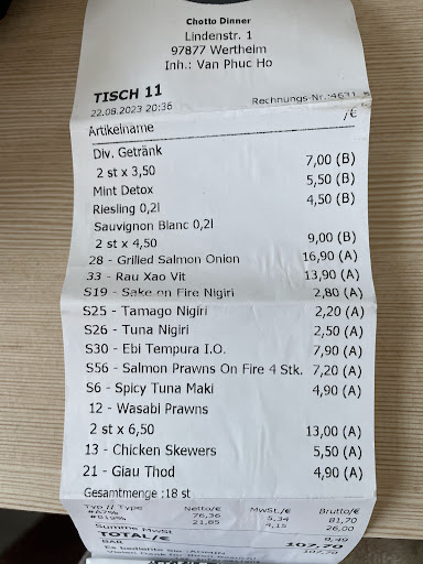 Mit dem Chotto Dinner haben wir endlich ein gutes Asiatisches Restaurant in Wertheim. Das sushi hier hat ausgesprochen gute Qualität, der verwendete Fisch ist so gut wie sonst nirgends in der Gegend. Der Service ist nett, einmal haben wir beim abholen Ente statt Tofu bekommen, das Gericht wurde umgehend neu zubereitet, das Gericht mit Ente durften wir kostenlos mitnehmen. Das Restaurant sieht von Innen top aus, der alte Weinkeller wurde zum Jungen hippen Sushi Asian Fusion Kitchen Restaurant umgebaut, echt toll. Ich mag auch das Share Konzept beim Sushi: wenn mehrere Personen am Tisch Sushi bestellen, wird eine große Sushi Installation gebracht, von der sich alle etwas dürfen.