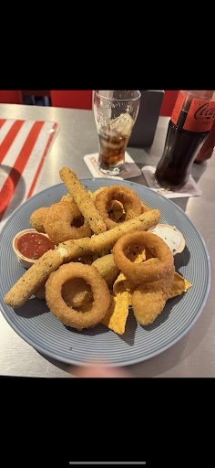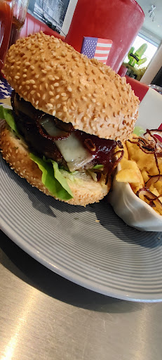 Im Zusammenhang mit dem Besuch des Shoppingcenters Wertheim Village waren wir zum Abendessen im benachbarten millers Bistro, was ein typisches American Diner darstellt. Viele Burger, Fingerfood, diverse Schnitzel, auch Lendchen vom Schwein und Rumpsteaks. Viele Getränke und home made ice teas, verschiedene Biere und Desserts. Die Inneinrichtung ist typisch American Style. Die Polsterung in rot trifft auf glänzenden Stahl, tolles Ambiente, viel Tageslicht im Lokal, gefällt. Ich schätze ca. 60 Sitzplätze im Innenbereich und 30 Plätze im Sommer im Außenbereich. Also genügend Platz für hungrige Menschen. Das Besondere an diesem American Burger Schnitzel Lokal ist, dass hier sehr viele regionale Produkte verwendet werden, darunter die Burger Fleisch Patties mit namentlich genannten Metzger aus der Nähe, Eier vom Bauernhof aus der Nähe, Salat, Gemüse, und das Brötchen vom Burger von einer regionalen Bäckerei. Da das Fleisch auf Aussage der Karte immer frisch ist, ist es hier auch möglich, den Gargrad des Burger Fleisches selbst zu bestimmen. Top! Ich liebe saftiges, rotes Rindfleisch. Man kann selbstverständlich auch komplett durchgegartes Fleisch bekommen. Oder eben auch Medium rare, je nach Wohlwollen. Wir wurden sehr freundlich von der Bedienung hinter dem Tresen begrüßt und uns auf unseren Wunsch hin auf einer Bank sitzen zu wollen, ein eben solcher Tisch mit Bank auch angeboten. Die Speisekarte ist reichlich und preislich in Ordnung. Wir entschieden uns als Vorspeise für das Gericht Nummer 1, Nachos mit Hackfleisch, Käse und sour Creme als 1 Portion für uns zusammen. Als Hauptgericht 2 verschiedene Burger, jeweils mit inkludierten Beilagen. Während dem Warten auf die Vorspeise nahmen wir angenehme Musik wahr, in einer moderaten Lautstärke. Eine Wand war mit Fotografien bemalt, ein Aufsteller in Form eines Kaktus, eine alte Tankzapfsäule, diverse amerikanische Einrichtungen. Eben ein typisch amerikanisches burgerlokal, sehr schön gemacht. Die Toiletten wirkten auf uns neu und sehr gepflegt. Die Vorspeise kam und wir waren positiv überrascht. Ansprechende Optik, leckere 4 tupfen sour cream, einiges an Hackfleisch und eben Käse und Nachos. Sehr lecker. Hat uns beiden sehr gut geschmeckt. Danach kamen die burger. Wir haben uns für die XL Variante mit den 255 gramm paddies entschieden. Sehr lecker ebenfalls und der bereits zuvor von mir erwähnte Gargrad wurde Wunsch gemäß erfüllt. Ich wollte Medium und der pattie war Medium. Leckere sauce, leckerer, intensiv schmeckender Käse, tolle Präsentation. Und super saftiger burger. Fleischgeschmack pur! Die Pommes waren ebenfalls sehr gut und knusprig und lecker. Insgesamt hatten wir eine wirklich schöne Zeit dort in dem millers Bistro, Ambiente top, Speisen top, Qualität sehr gut, Preis Leistung gut.