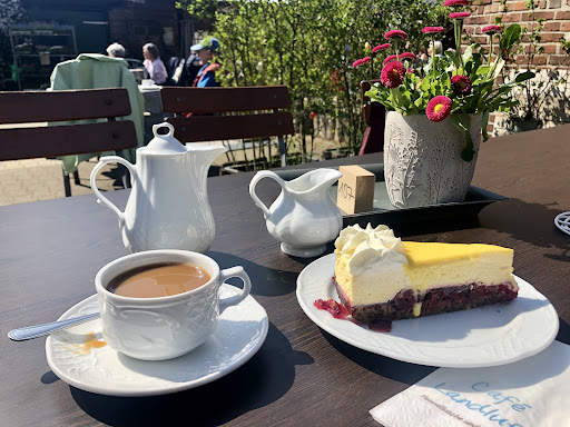 Read moreEin sehr schönes Café. Wir waren zum Frühstücksbuffet in der Woche auf einem Mittwoch da. Buffet war reichlich. Verschiedene Brötchensorten und Brot. Laugenbrötchen,Rosinenstuten. Eine Wurstplatte, eine Käseplatte,selbstgemachte Marmelade,Margarine oder Butter. Rührei,Würstchen,kleine Frikadellen und sehr knuspriger Speck. Frischer Obstsalat,Pudding( Vanille und Schoko) und Joghurt. Müsli und Milch. 2 Sorten Saft.Sekt im Kühler. Getränke sind mit im Preis enthalten. Warmen oder kalten Kakao,Tee, latte macchiato ,eine ganze Kanne Kaffee und wenn man mehr braucht wird nachbestellt. Der Service ist super freundlich. Das Café hat auch eine erste Etage die sehr gemütlich aussah. Wir saßen im Erdgeschoss. Eine Kühltheke mit selbstgemachten leckeren Kuchen mit angenehmen Preisen. Draußen gibt es auch sehr viele Tische zum verweilen. Kleine Snacks und Getränke für mittags oder nachmittags gibt es auch. Dan gibt es dort einen kleinen Hofladen,wo man frische Blumen, Eier, Obst,Gemüse, Dekoartikel und wenn da Marmelade erwerben kann. Wer mit dem Auto kommt,es sind kostenlose Parkplätze vorhanden. Ein paar am Eingang und andere ein bisschen entfernt.Die Umgebung ist schön ländlich. Wir waren auf jeden Fall sehr begeistert und werden es jeden...