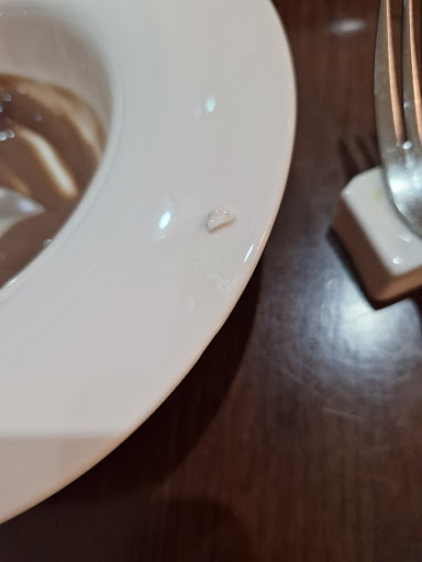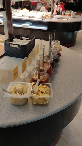 Voller Vorfreude und mit gesegnetem Appetit gingen meine Tochter und ich zum Buffet. Sah wirklich optisch alles lecker aus und duftete auch so. Der erste Teller, welchen ich aus der Ablage unterhalb der Theke entnahm war schmutzig. Es klebten deutlich sichtbar Speisereste vom Vorgänger daran. Auch der zweite Teller war nicht sauber... Ich reklamierte es beim anwesenden Personal. Die junge Dame kommentierte dazu nur: "Da hinstellen!"