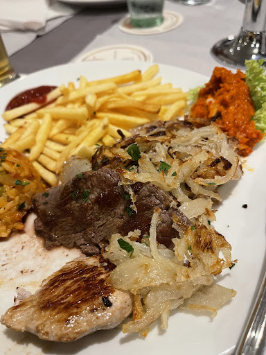 Als Hauptgang der gemischte Grillteller mit Pommes Frites. Verschiedene Sorten Fleisch vom Grill. Alles saftig, was bei den Dingen aus gehacktem Fleisch nicht immer einfach ist. Hier jedoch gelungen. Geschmacklich alles ok ohne sich in den Vordergrund zu stellen. Die Pommes Frites kross und genau richtig gesalzen. Sonderwünsche werden erfüllt. Die Portionen sind ausreichend bemessen.
